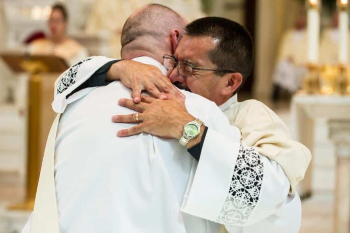 Visiblemente emocionados, los seis candidatos subieron al altar y expresaron su intención de ser ordenados oficialmente diáconos y llevar con humildad su ministerio. Luego, de forma individual, se acercaron al Arzobispo y le prometieron respeto y obediencia a él y a sus sucesores. Siguiendo el rito de ordenación, se postraron ante el altar, para recibir la guía del Espíritu Santo, mientras los presentes les acompañaban en oración. Acto seguido, cada uno recibió la estola que los invistió como nuevos ministros del diaconado. También recibieron el Libro de los Sagrados Evangelios, porque son llamados a ser mensajeros de la palabra de Jesucristo. “Crean, enseñen y practique lo que aquí leen”, les exhortó el Arzobispo Aquila. Posteriormente, los nuevos ordenandos recibieron el abrazo y beso fraternal de sus hermanos diáconos.