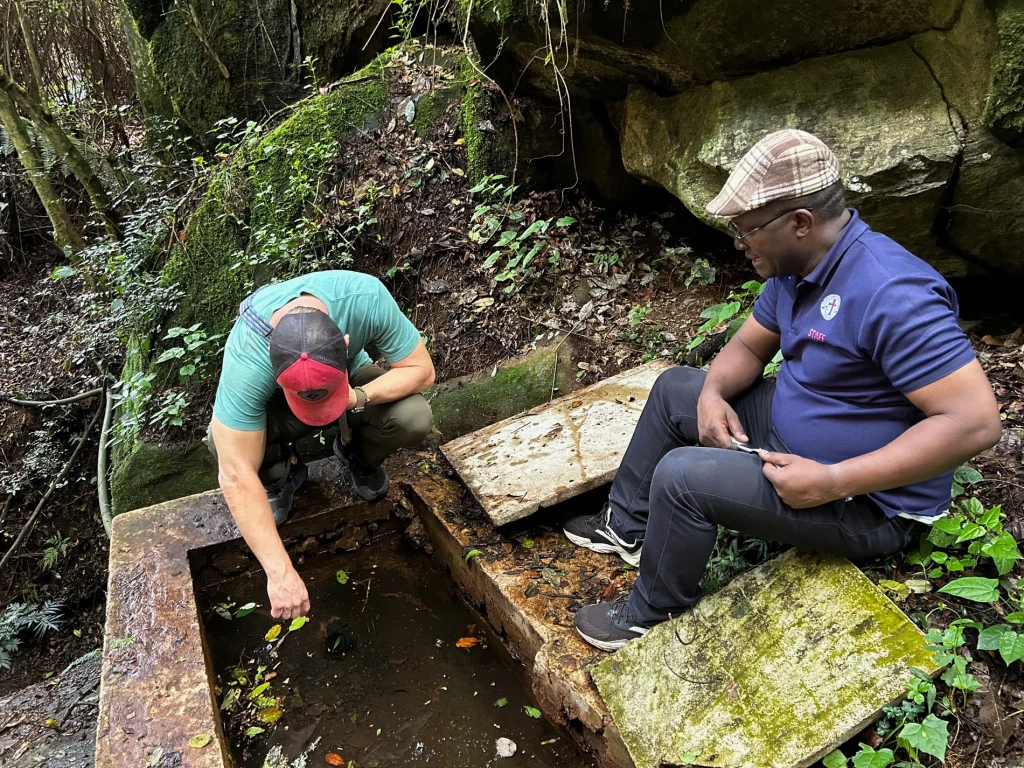 Josiah en una fuente de agua con el padre Beta. (Foto proporcionada)