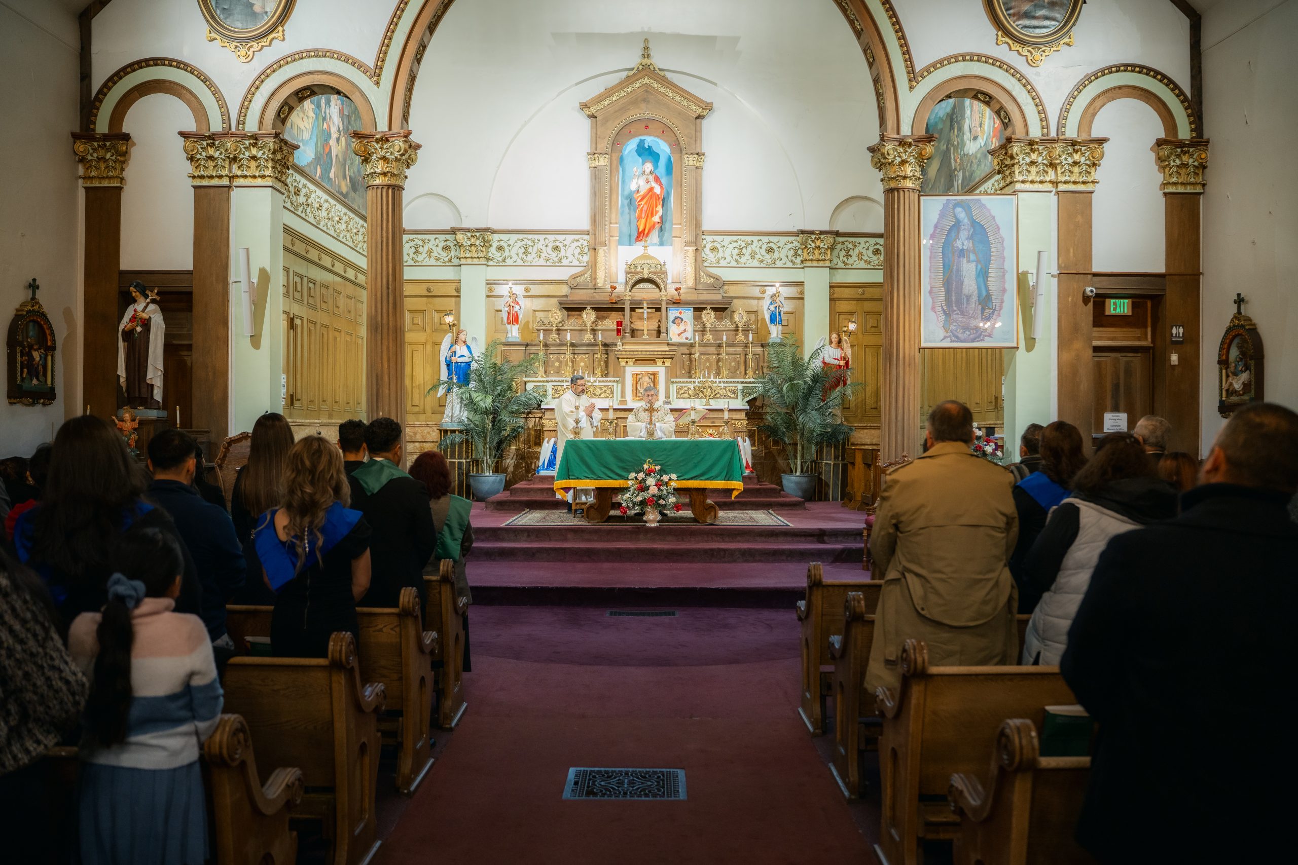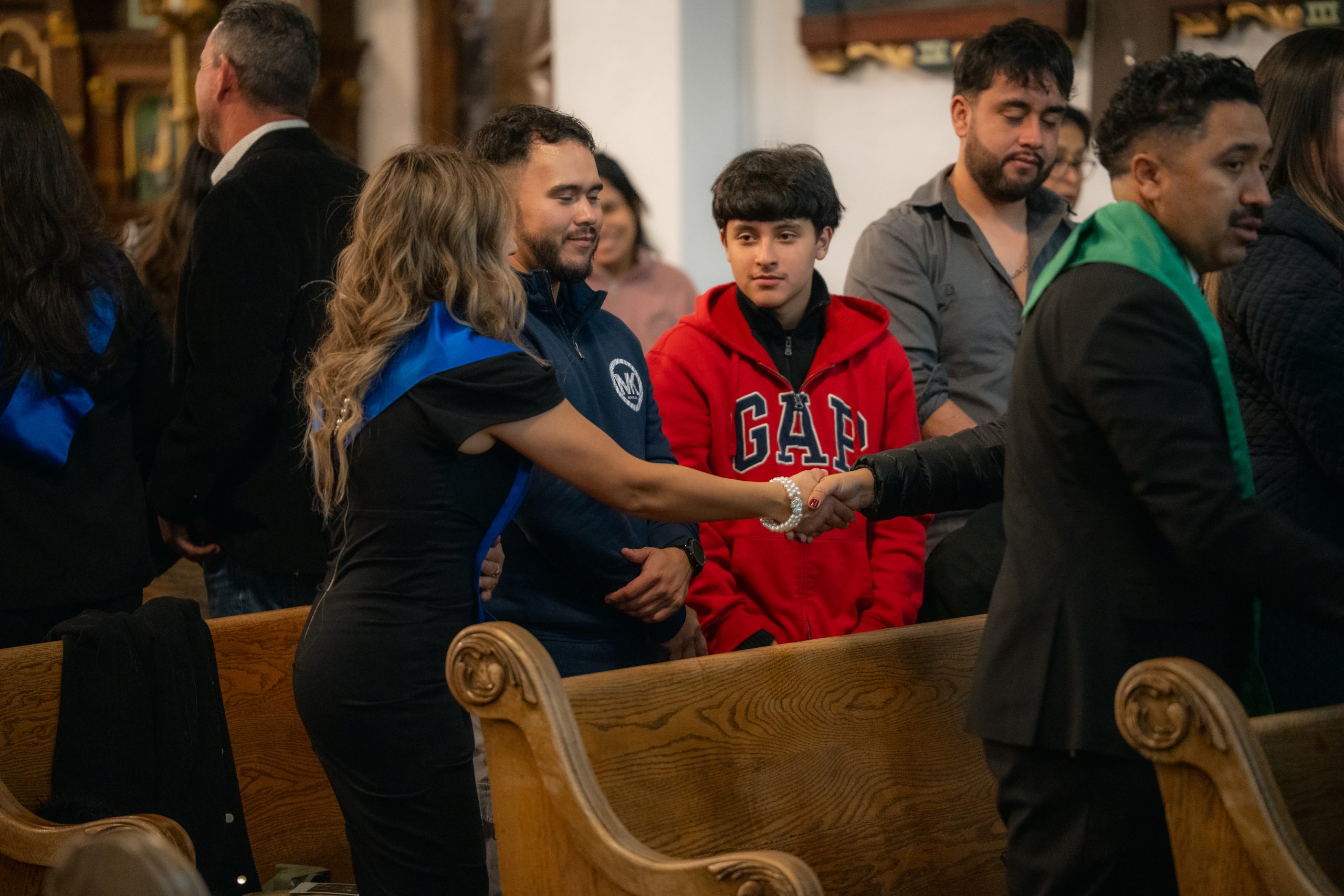 La jornada comenzó con una Misa especial presidida por el obispo Jorge Rodríguez en la parroquia Sacred Heart de Denver. Durante su homilía, el obispo recordó la presentación de la Virgen María, cuya fiesta coincidió con la graduación, invitando a los graduados a mirar en ella un ejemplo de entrega total a la voluntad de Dios.