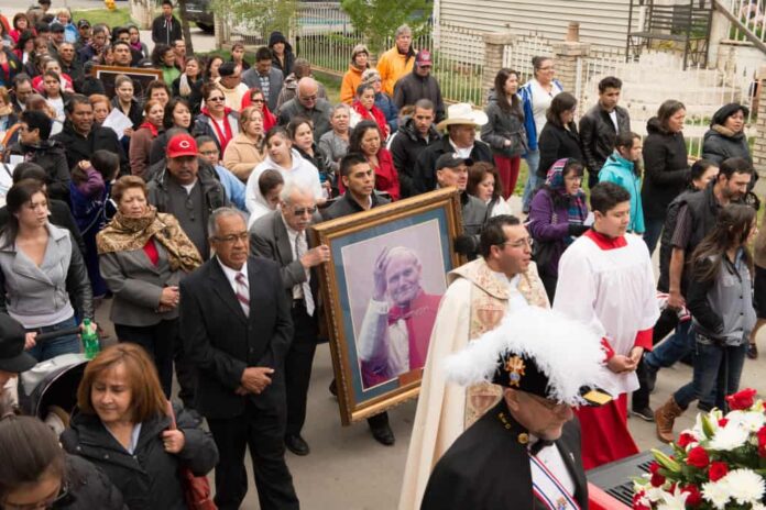 Esta Misa fue precedida por una procesión, que el mismo día partió de la parroquia Our Lady of Guadalupe y llegó a St. Joseph Polish, donde fieles, vestidos con trajes típicos de Polonia los recibieron para unirse a la celebración Eucarística.