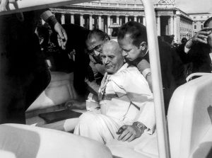 Juan Pablo II se vio reflejado en la imagen del papa martirizado. El intento de homicidio que milagrosamente sobrevivió el 13 de mayo de 1981 sucedió en el aniversario de la primera aparición de la Virgen de Fátima. Después diría: “Una mano materna guio la bala”. En otras palabras, consideró que Nuestra Madre lo había salvado de la muerte que había sido profetizada para él en Fátima.