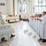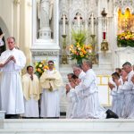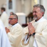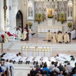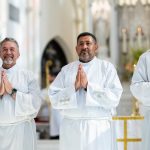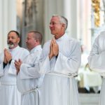 “Permanezcan siempre cerca de la Eucaristía y amen la Eucaristía”, exhortó el arzobispo a los que iban a ser ordenados. En cada Misa a la que asiste cada discípulo, estamos llamados a ofrecernos con Jesucristo al Padre. Nos ofrecemos como sacrificio al Padre, tal como lo hizo Jesús en la cruz. Nunca debemos olvidarlo. Debemos participar en la Misa y conectar con Jesús. Y al contemplar su cuerpo y su sangre, contemplamos también su alma y divinidad. Recibimos a la segunda persona de la Trinidad y unimos nuestras vidas a él para poder entregarlas por aquellos a quienes servimos, tal como él entregó la suya.
