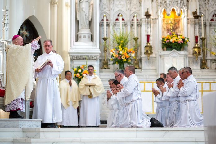 “Recuerden siempre la promesa del Señor a Jeremías, porque esa promesa también se les da hoy”, concluyó el arzobispo. “Al ser ordenados, él los envía y les ordena que prediquen la verdad del evangelio, que inviten a otros a encontrar a Jesucristo, que acompañen a otros con Cristo, guiándolos hacia el único que puede darles esperanza. Hoy, al ser ordenados, escuchen las palabras del Señor que hablan a sus corazones: ‘Que contigo estoy para protegerte… voy a poner mis palabras en tu boca’ (Jeremías 1, 8-9)”.