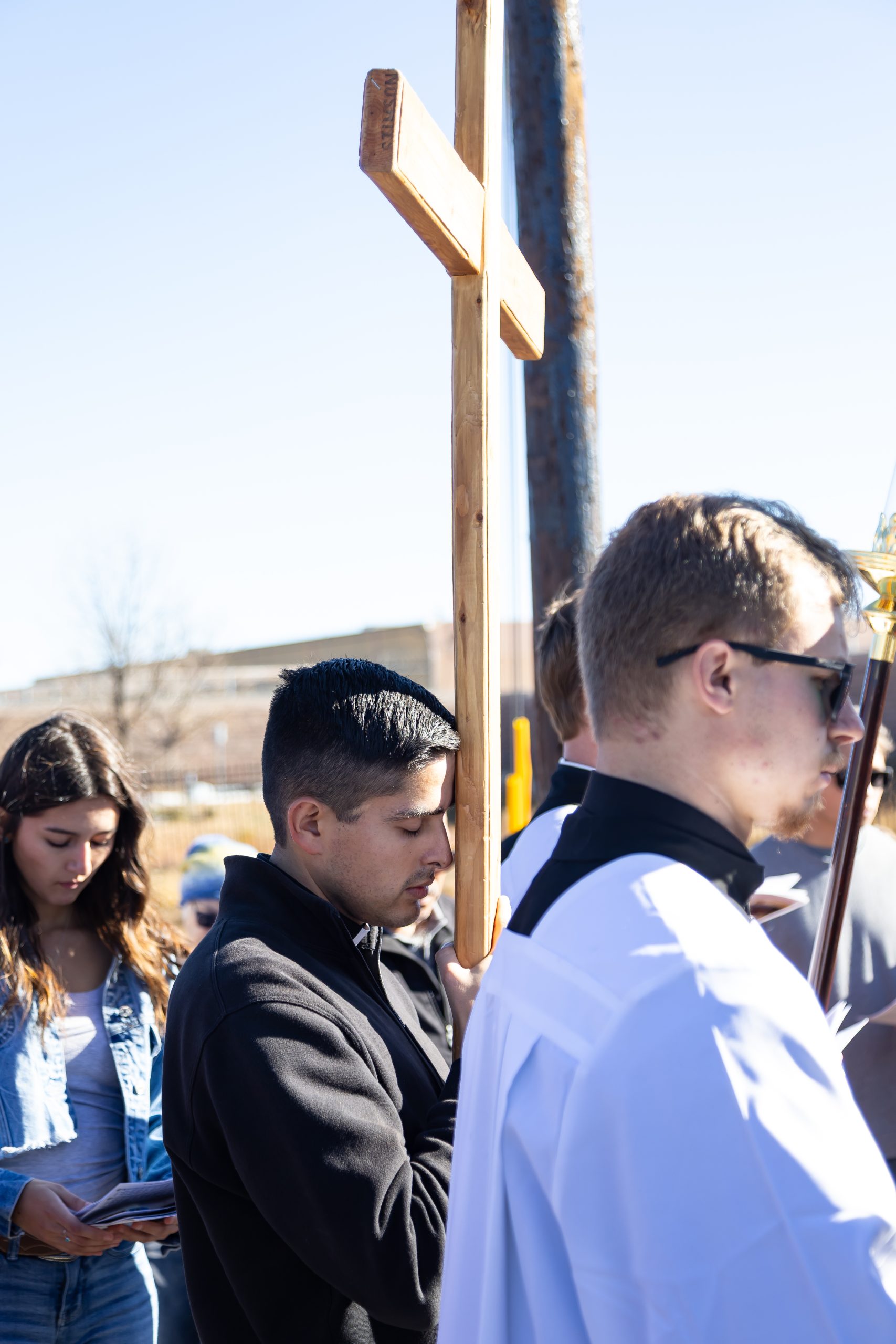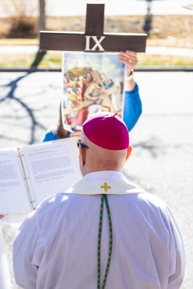 Guiados por el arzobispo Samuel J. Aquila y el obispo Jorge Rodríguez, y convocados por el Comité de Atención Pastoral a los Migrantes, cientos de fieles de más de 36 parroquias locales se reunieron en una oración ferviente y una procesión pacífica alrededor del centro de detención GEO de ICE en Aurora, contemplando el camino de la cruz de Jesús, su camino hacia la crucifixión para salvar a cada uno de los hijos de Dios.