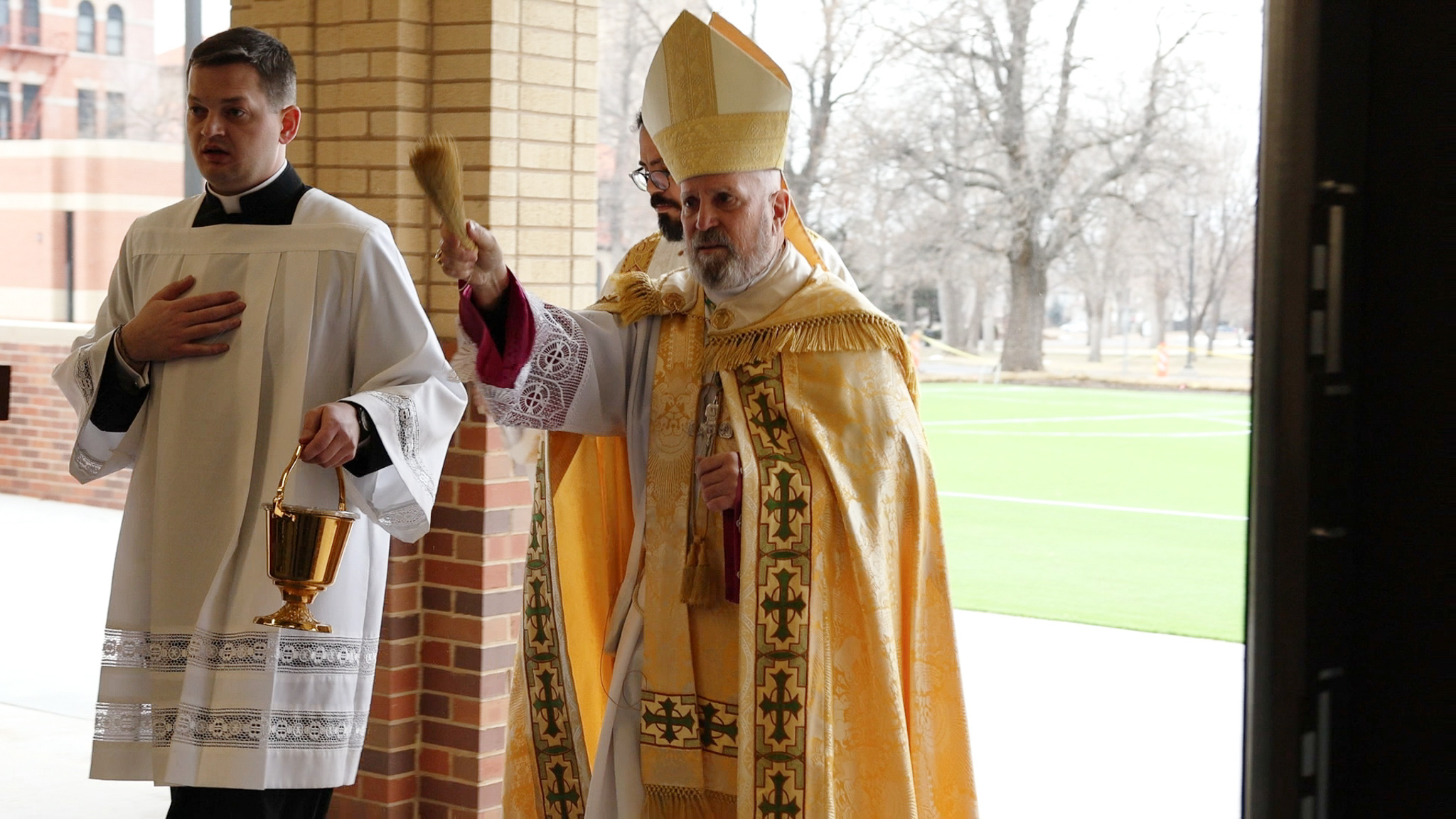 A pesar de las temperaturas gélidas, decenas de benefactores, seminaristas y miembros del personal arquidiocesano se reunieron el viernes para inaugurar y bendecir el recién terminado Centro Monsignor Glenn en el seminario St. John Vianney, en Denver.