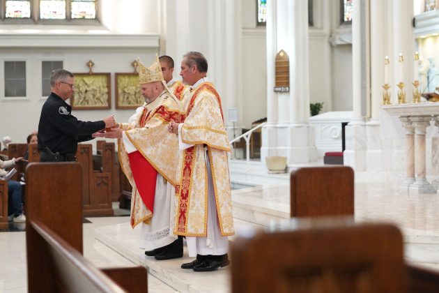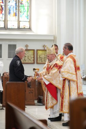 Al final de la Misa Azul, el arzobispo Samuel elevó sus manos sobre los socorristas y sus familias para darles la bendición final, una oración de acción de gracias por quienes nos protegen, pidiendo que el Señor los guarde.