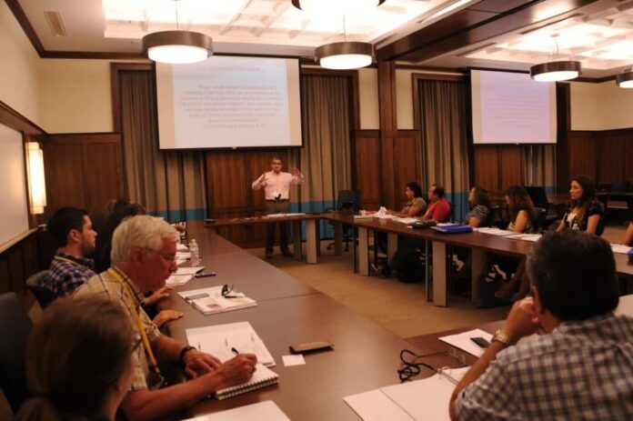 El programa de 10 días culminará este jueves 31 de julio. Hasta la fecha los líderes vienen reflexionando sobre el contexto del ministerio hispano en Estados Unidos, la historia de inmigración desde la fundación del país, la historia de la Iglesia Católica en Estados Unidos, las consecuencias del secularismo, el contexto político, los roles y desafíos de quienes ocupan posiciones de liderazgo.