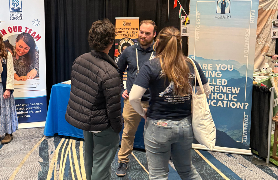 Junto con el programa Cabrini Teaching Fellows, miembros de la comunidad de escuelas católicas aprovecharon la conferencia anual de SEEK como una oportunidad ideal para invitar a otros a la vocación de la educación católica. El Dr. Scott Elmer, nuevo superintendente de escuelas católicas y director arquidiocesano de misión, se unió a maestros, directivos, líderes de escuelas católicas y fellows de Cabrini durante la conferencia para encontrarse con jóvenes profundamente comprometidos con la misión de llevar a otros a Cristo, incluidos posibles futuros maestros de las Escuelas Católicas de Denver y personas interesadas en el programa.